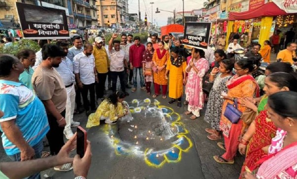 पावसाळ्यापासून वसई विरार शहरात विविध ठिकाणच्या रस्त्यावर मोठ्या प्रमाणात खड्डे पडले आहेत. या मोठं मोठ्या खड्ड्यांमुळे रस्त्यांची अक्षरशः दयनीय अवस्था झाली आहे. त्यामुळे नागरिकांना रस्त्यावरून धोकादायक प्रवास करावा लागत आहे. खड्ड्यांमुळे अपघाताच्या घटना ही समोर येत आहे. गणेशोत्सव झाला, नवरात्री उत्सव ही संपला आता दिवाळी सुरू झाली तरी रस्ते दुरुस्तीकडे पालिकेने दुर्लक्ष केले आहे. वेळेत रस्त्यांवरील खड्डे दुरुस्त न केल्याने सर्वत्र धुळीचे साम्राज्य ही तयार होऊ लागले आहे. एकीकडे खड्डे तर दुसरीकडे धूळ प्रदूषण अशा दुहेरी कोंडीत वसई विरारची जनता सापडली आहे. याबाबत पालिकेकडे वारंवार पत्रव्यवहार केला आहे तरी सुद्धा पालिकेचे केले आहे. त्यामुळे संतप्त झालेल्या नागरिकांनी नालासोपारा येथील रस्त्यावर दिवाळीच्या पहिल्याच दिवशी रस्त्यावर पडलेल्या खड्ड्यात रांगोळी काढून त्यात दिवे लावून प्रशासनाविरोधात संताप व्यक्त केला आहे. खड्डेमय रस्त्यांमुळे नागरिकांची खूप गैर सोय होत आहे अशात गणपती, नवरात्री नंतर आता दिवाळी तोंडावर आली तरी पालिकेला शहरातील खड्डे बुजवायला जाग येत नसल्याने असे आंदोलन करण्यात आल्याचे माजी सभापती निलेश देशमुख यांनी केला आहे. पालिकेने आतातरी जागे होऊन रस्त्यांची दुरुस्ती करावी अशी मागणी यावेळी आंदोलकांनी केली आहे.