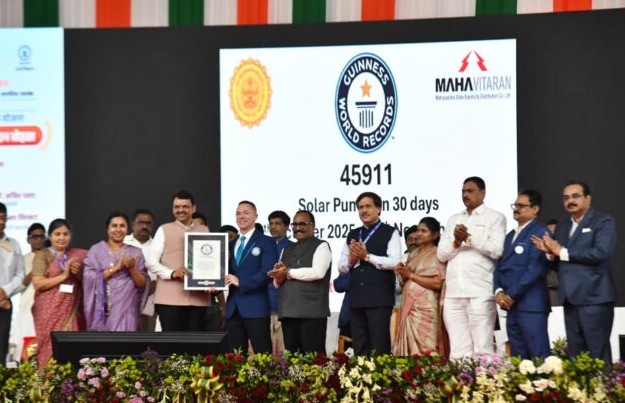 मुंबई : देशात महाराष्ट्र सौर ऊर्जेचा शेतीत सर्वाधिक वापर करणारे राज्य ठरले आहे. शेतकऱ्यांसाठी फिडर सौर ऊर्जेवर आणून स्वतंत्र १६ हजार मेगावॅट निर्मिती करु. त्यामुळे अन्य वापरातील विजेच्या दरात आपण दरवर्षी ३ टक्के कपात करुन ग्राहकांना स्वस्त वीज देऊ शकतो,असे मुख्यमंत्री देवेंद्र फडणवीस यांनी सांगितले. ‘मागेल त्याला सौर कृषीपंप’ योजनेत महाराष्ट्राने विश्वविक्रम केला आहे. महावितरणने एकाच महिन्यात ४५ हजार ९११ सौर कृषीपंप स्थापित करण्याचा उच्चांक गाठला. या विक्रमाची गिनिज बुकमध्ये नोंद झाली. गिनीज बुकतर्फे विश्वविक्रम प्रमाणपत्र प्रदान सोहळा छत्रपती संभाजीनगरच्या शेंद्रा एमआयडीसीमध्ये ऑरिक सिटी मैदानावर पार पडला. या सोहळ्यास मुख्यमंत्री देवेंद्र फडणवीस यांची प्रमुख उपस्थिती होती. या विश्वविक्रमाची घोषणा करण्यासाठी गिनीज बुक ऑफ वर्ल्ड रेकॉर्ड्सचे कार्ल सॅबेले यावेळी उपस्थित होते.
