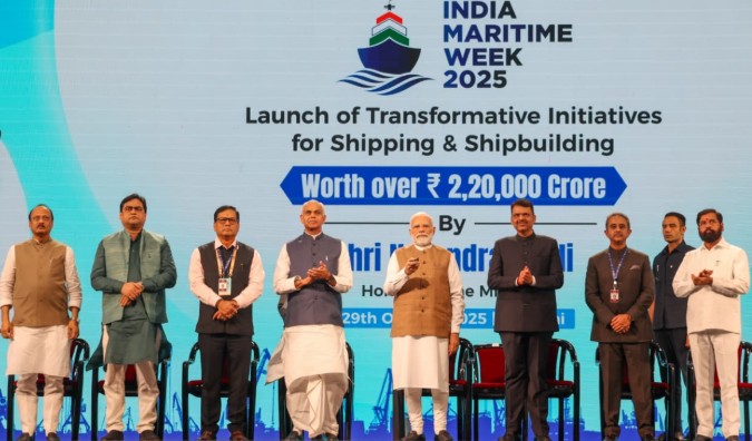 मुंबई : समुद्र ही केवळ सीमा नव्हे तर ती विकासाची संधी आहे, असे मानून छत्रपती शिवाजी महाराजांनी सागरी क्षेत्रावर भारतीय सामर्थ्याचा झेंडा रोवला होता. याच सामर्थ्याला पुढे नेऊन भारत आज जगासाठी सागरी उद्योग आणि व्यापार क्षेत्रातील दीपस्तंभाची भूमिका निभावण्यासाठी सज्ज असल्याचे प्रतिपादन प्रधानमंत्री नरेंद्र मोदी यांनी केले. गोरेगाव येथील बॉम्बे एक्झिबिशन सेंटर (नेस्को) येथे आयोजित इंडिया मेरीटाईम वीक २०२५ अंतर्गत ‘मेरीटाईम लीडर्स कॉन्क्लेव्ह’ मध्ये २ लाख २० हजार कोटींच्या ट्रान्सफॉर्मेटिव इनिशिएटिव फॉर शिपिंग अँड शिपबिल्डिंगचा शुभारंभ प्रधानमंत्री नरेंद्र मोदी यांच्या हस्ते झाला. त्यावेळी ते बोलत होते. राज्यपाल आचार्य देवव्रत, मुख्यमंत्री देवेंद्र फडणवीस, केंद्रीय बंदरे, जहाज वाहतूक आणि जलमार्ग मंत्री सर्वा सर्बानंद सोनोवाल, केंद्रीय परराष्ट्र व्यवहार राज्यमंत्री कीर्तीवर्धन सिंग, बंदरे राज्यमंत्री शांतनू ठाकूर, उपमुख्यमंत्री एकनाथ शिंदे, उपमुख्यमंत्री अजित पवार, बंदरे मंत्री नितेश राणे आदी यावेळी उपस्थित होते.