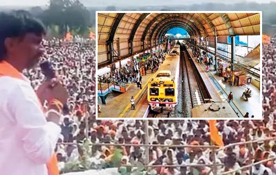 मुंबई : मराठा आरक्षणाच्या मुद्यावरून पुन्हा एकदा मराठा आंदोलक आक्रमक झाला आहे. मराठा समाजाला आरक्षण मिळावे, त्यासाठी शुक्रवारी सकाळी मनोज जरांगे पाटील आझाद मैदानात दाखल झाले. त्यांना पाठींबा देण्यासाठी लाखोंच्या संख्येने आंदोलक विविध मार्गाने मुंबईत दाखल होत होते. तर, आझाद मैदान परिसरात, सीएसएमटीच्या स्थानकासमोरील मुख्य रस्त्याच्या दुतर्फा हजारोंच्या संख्येने आंदोलक उभे होते. तसेच, छत्रपती शिवाजी टर्मिनस स्थानकात आंदोलक बसले होते. त्यामुळे अत्यावश्यक काम असेल तरच सीएसएमटीवरून प्रवास करावा, असे आवाहन मध्य रेल्वे प्रशासनाकडून प्रवाशांना करण्यात आले.