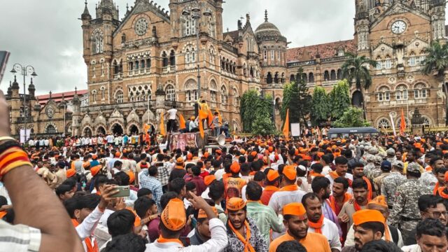 शुक्रवारी सकाळी १० वाजल्यापासून मनोज जरांगे आझाद मैदानावर उपोषणास बसले आहेत. त्यांच्या आंदोलनाला पाठिंबा देण्यासाठी राज्याच्या कानाकोपर्यातून मराठा आंदोलक शुक्रवारी पहाटेपासून मोठ्या संख्येने मुंबईत दाखल झाले आहेत. अजूनही आंदोलक मुंबईत दाखल होतच आहेत. त्यामुळे दक्षिण मुंबईत, त्यातही पालिका मुख्यालय आणि सीएसएमटी परिसर आंदोलकांनी भरला आहे. अंघोळीची, नाश्त्याची, खाण्यापिण्याची, शौचालयाची योग्य सोय नसल्याने आंदोलक आक्रमक झाले आहेत. राज्य सरकार जाणिवपूर्वक मराठा आंदोलकांची गैरसोय करत आहे. त्यांना आंदोलन दडपायचे आहे, असे म्हणत आंदोलक आक्रमक झाले आहेत. मोठ्या संख्येने या आंदोलकांनी शनिवारी सकाळी पालिका मुख्यालयासमोर ठिय्या मांडला आहे.
