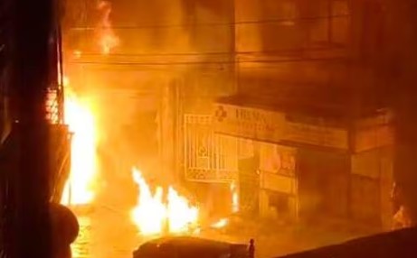 नालासोपारा : नालासोपारा पूर्वेकडील कपड्यांच्या दुकानाला सोमवारी भीषण आग लागल्याची घटना घडली आहे. या आगीत दोन दुकानं आगीच्या विळख्यात सापडल्याने मोठ्या प्रमाणावर आर्थिक नुकसान झालं आहे.सुदैवाने या दुर्घटनेत कोणतीही जीवितहानी झाली नसली तरी दुकान आगीच्या भक्षस्थानी पडले असून पूर्णतः खाक झाले आहे. घटनेची माहिती मिळताच वसई विरार शहर महानगरपालिकेच्या अग्निशमन दलाच्या गाड्या तातडीने घटनास्थळी दाखल झाल्या. जवानांकडून आग विझवण्यासाठी शर्थीचे प्रयत्न सुरू असून परिस्थितीवर नियंत्रण मिळवण्याचे प्रयत्न सुरू आहेत. आग नेमकी कशामुळे लागली याचे कारण अद्याप स्पष्ट झालेले नाही. दरम्यान या घटनेमुळे परिसरात मोठी खळबळ उडाली आहे.