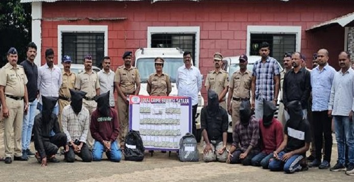 सातारा : पुणे- बेंगलोर महामार्गावर कार अडवून कार मधील वीस लाखाचा मुद्देमाल चोरणे आणि चालकाला मारहाण करून त्याचे अपहरण करणे या गंभीर गुन्ह्यांमध्ये भुईंज पोलीस व स्थानिक गुन्हे शाखा सातारा यांनी संयुक्तपणे कारवाई करून केरळ मधील सात जणांच्या टोळीला ताब्यात घेतले आहे. त्यांच्याकडून रोख रक्कम २० लाख व गुन्ह्यात वापरलेली वाहने असा ३५ लाखाचा मुद्देमाल जप्त करण्यात आला आहे. या प्रकरणातील इतर सहा आरोपी फरार आहेत. पुणे बेंगलोर महामार्गावर दिनांक १२ जुलै रोजी मध्यरात्री पावणेतीनच्या दरम्यान आरोपींनी कारचा वापर करून एका दुसऱ्या कारला अडवून त्या गाडीची तोडफोड केली आणि गाडीतील चालकाचे अपहरण करून त्याच्याकडील वीस लाख रुपये रोख पळवले. चालकाला सर्जापूर फाटा तालुका जावळी येथे सोडून त्यांनी पलायन केले. याप्रकरणी विशाल हासबे (वय ३०, राहणार हिवरे, तालुका खानापूर, जिल्हा सांगली) यांनी भुईंज पोलिस ठाण्यात फिर्याद दिली होती. पोलिस अधीक्षक तुषार दोशी यांच्या सूचनेप्रमाणे भुईंज पोलिस स्टेशनचे सहाय्यक पोलीस निरीक्षक रमेश गर्जे व स्थानिक गुन्हे शाखेचे पोलिस निरीक्षक अरुण देवकर यांचा संयुक्त तपास सुरू झाला.
