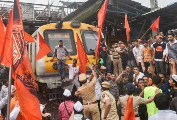 मुंबई : मराठा आरक्षणाच्या मागणीसाठी सुरू असलेल्या आंदोलनामुळे मुंबईची ‘लाईफलाईन’ समजली जाणारी मध्य रेल्वेची वाहतूक विस्कळीत झाली आहे. आज सकाळी, आंदोलकांनी छत्रपती शिवाजी महाराज टर्मिनस (CSMT) स्टेशनवर रेल्वे रुळांवर उतरून जोरदार घोषणाबाजी केली. यामुळे रेल्वे सेवा जवळपास २० ते ३० मिनिटे उशिराने धावत आहेत, ज्यामुळे लाखो प्रवाशांचे हाल झाले आहेत.