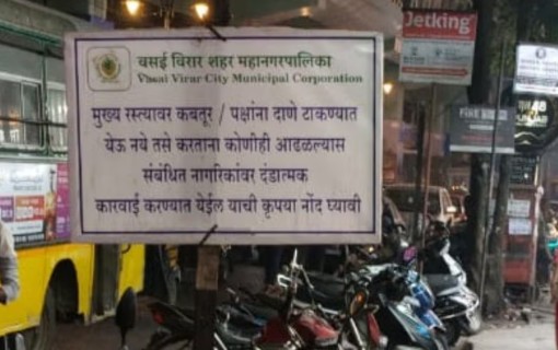 वसई : वसई विरार शहरात सार्वजनिक ठिकाणी पक्ष्यांना दाणे घातले जात असल्यामुळे नागरिकांना दुर्गंधी आणि अस्वच्छतेचा सामना करावा लागत होता. त्यामुळे आता सार्वजनिक ठिकाणी पक्ष्यांना दाणे टाकण्यास महापालिकेकडून करण्यात आली आहे. तसे सूचना फलक पालिकेकडून लावण्यात आले आहेत.
