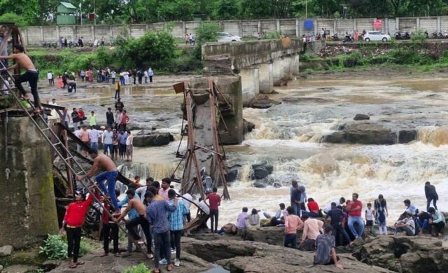 पुणे : मावळ तालुक्यात एक धक्कादायक घटना घडली असून तळेगाव दाभाडे शहराजवळील प्रसिद्ध पर्यटनस्थळ कुंडमळा येथे इंद्रायणी नदीवर असलेला जूना पूल कोसळला आहे. त्यामध्ये अनेक पर्यंटक इंद्रायणी नदीमध्ये बुडाले असून २० ते २५ जण वाहून गेल्याची भीती व्यक्त केली जात आहे. यामध्ये काही लहान मुलांचाही समावेश असल्याची माहिती आहे. यामध्ये पाच जणांचा मृत्यू झाला असून मृतांच्या आकड्यात वाढ होण्याची शक्यता आहे. पुण्यातील मावळमध्ये कुंडमळ्यात पावसाळ्यात सुट्टीचा दिवस असल्याने या ठिकाणी मोठ्या प्रमाणात पर्यटक गर्दी करतात. त्यातच या ठिकाणचा पूल कोसळला. ही घटना रविवारी ३.३० वाजण्याच्या सुमारास घडल्याचं सांगण्यात येत आहे.