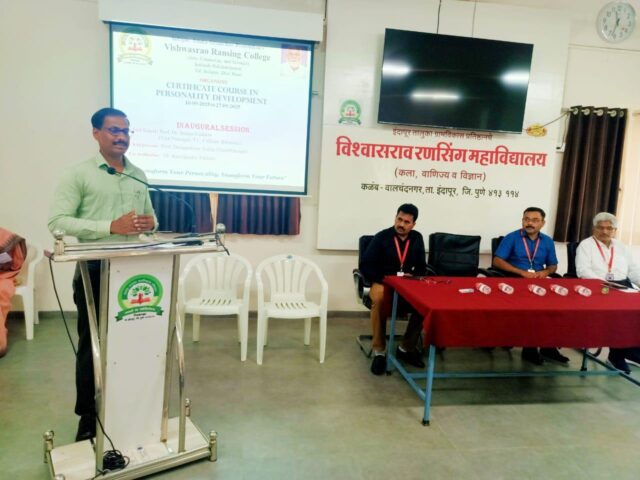 वृत्तसंस्था : इंदापूर तालुका ग्रामविकास प्रतिष्ठानचे विश्वासराव रणसिंग महाविद्यालयात व्यक्तिमत्व विकास सर्टिफिकेट कोर्सचे आयोजन १६ सप्टेंबर ते २७ सप्टेंबर २०२५ कालावधीमध्ये पार पडणार आहे. कोर्सच्या आयोजनासाठी इंदापूर तालुका ग्रामविकास प्रतिष्ठानचे सचिव वीरसिंह रणसिंग व महाविद्यालयाचे प्राचार्य डॉ. अशोक काळंगे यांचे मार्गदर्शन महत्त्वाचे ठरले आहे.
