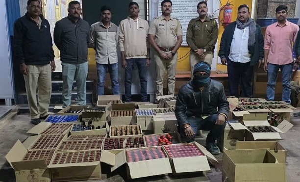शुक्रवारी (दि. १९) रात्री ८.४५ वाजण्याच्या सुमारास परळी वैजनाथ येथील हॉटेल आबासाहेब समोरील पत्र्याच्या शेडमध्ये आरोपी बेकायदेशीररीत्या विविध कंपन्यांची दारू साठवून ठेवत असल्याची माहिती पोलिसांना मिळाली होती. त्यानुसार पोलीस उपनिरीक्षक संदीप उत्तमराव चव्हाण यांनी पथकासह छापा टाकून कारवाई केली. या कारवाईत विविध कंपन्यांच्या दारूचे बॉक्स जप्त करण्यात आले. एकूण जप्त मुद्देमालाची किंमत अंदाजे दीड लाखांहून अधिक रुपये असल्याचे पोलिसांनी सांगितले. या प्रकरणी पोलीस ठाणे संभाजीनगर येथे शनिवारी (दि. २०) सकाळी १०.३४ वाजता ईश्वर रेशमाजी बहीरे (वय ३५, रा. कन्हेरवाडी, ता. परळी वै., जि. बीड) याच्यावर गुन्हा दाखल करण्यात आला असून पुढील तपास सुरू आहे.
