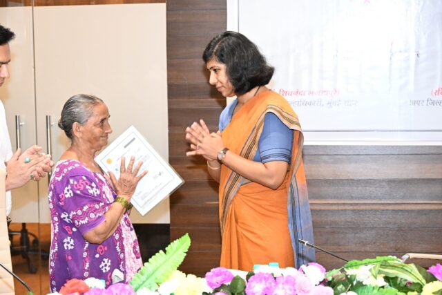 मुंबई : महसूल विभाग हा शासनाच्या योजना लाभार्थ्यांपर्यंत पोहोचवणारा महत्त्वाचा विभाग आहे. सर्वसामान्यांना विविध योजनांचा लाभ मिळवून देण्यासाठी महसूल विभागातील अधिकारी, कर्मचारी यांनी महाराष्ट्राच्या राजधानीत काम करण्याच्या मिळालेल्या संधीचा उपयोग करावा, असे आवाहन मुंबई शहर जिल्हाधिकारी आंचल गोयल यांनी केले. महसूल दिनानिमित्त जिल्हाधिकारी कार्यालयात आयोजित कार्यक्रमात श्रीमती गोयल यांच्या हस्ते विविध योजनांच्या लाभार्थ्यांचा तसेच उत्कृष्ट कार्य केलेल्या अधिकारी-कर्मचाऱ्यांचा प्रमाणपत्र देऊन सत्कार करण्यात आला. यावेळी त्यांनी कमी मनुष्यबळ असतानाही उत्कृष्ट कार्य केलेल्या विभागांच्या कामाचे कौतुक केले. अपर जिल्हाधिकारी रवी कटकधोंड, निवासी उपजिल्हाधिकारी डॉ.शिवनंदा लंगडापुरे यांच्यासह जिल्हाधिकारी कार्यालयातील अधिकारी-कर्मचारी यावेळी उपस्थित होते.