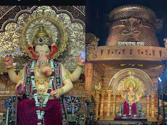 लालबागच्या राजाचे विलोभनीय रूप समोर येताच उपस्थितांनी ‘गणपती बाप्पा मोरया’ असा जयजयकार केला. सामान्यांपासून ते सेलिब्रिटींपर्यंत लाखो मुंबईकर दरवर्षी या राजाच्या दर्शनासाठी लांबच लांब रांगेत उभे राहतात. यंदा लालबागच्या राजाचा दरबार तिरुपती बालाजीच्या राजमुकुटात बसवण्यात आला आहे. यासाठी खास सुवर्ण गजानन महाल साकारण्यात आला आहे. लालबागच्या राजाची मूर्ती वात्सल्याने भरलेली असून, ती सोनेरी अलंकारांनी सजवण्यात आली आहे. सोन्याच्या पादुकांपासून ते सोन्याच्या राजमुकुटापर्यंत राजाचा हा राजेशाही थाट भाविकांना मंत्रमुग्ध करत आहे. यंदा प्रथमच लालबागच्या राजाच्या दरबाराची उंची तब्बल ५० फूटांपर्यंत वाढवण्यात आली आहे, ज्यामुळे हे दृश्य अधिक भव्य दिसत आहे. लालबागचा राजा आणि भक्तांचे एक खास नाते आहे. आपल्या नवसाला हा गणपती पावतो, अशी भाविकांची श्रद्धा असल्याने प्रत्येकजण त्याच्या चरणी लीन होतो.